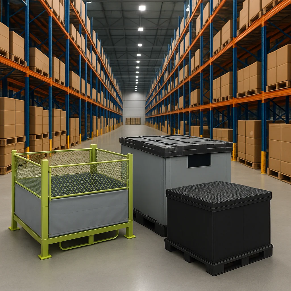 Contamos con una amplia variedad de contenedores plásticos tipo ropack, KLT, tarimas, bases y tapas, así como soluciones personalizadas en cartón industrial de alta resistencia. Optimizamos el manejo de materiales reduciendo costos logísticos, espacio y desperdicio.